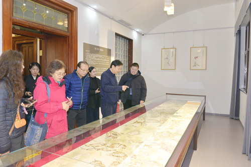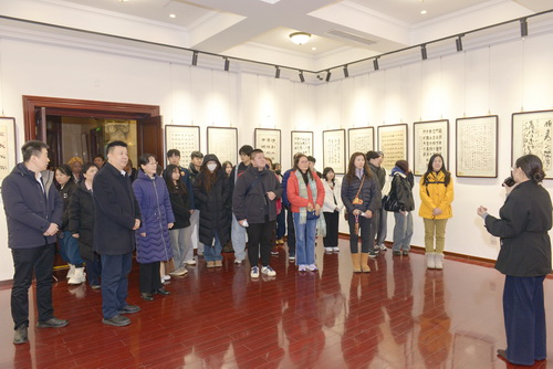 在津派国际文化交流中心,参访团成员参观了中华优秀传统文化综合展区和津派书画传承艺术展区,欣赏了和田玉文化、寿山石文化和津门老中青三代艺术家的近百件精品力作,了解了该中心打造“名人旧居+主题展馆+公益慈善”文化业态的情况,并进行了书法体验和交流互动。