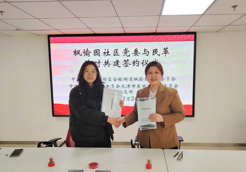 活动现场,第一支部主委姚丽与枫愉园社区党委书记常淑曼签署共建协议,明确理论学习共促、民生服务共办、文明创建共推、困难群众共扶等合作机制。